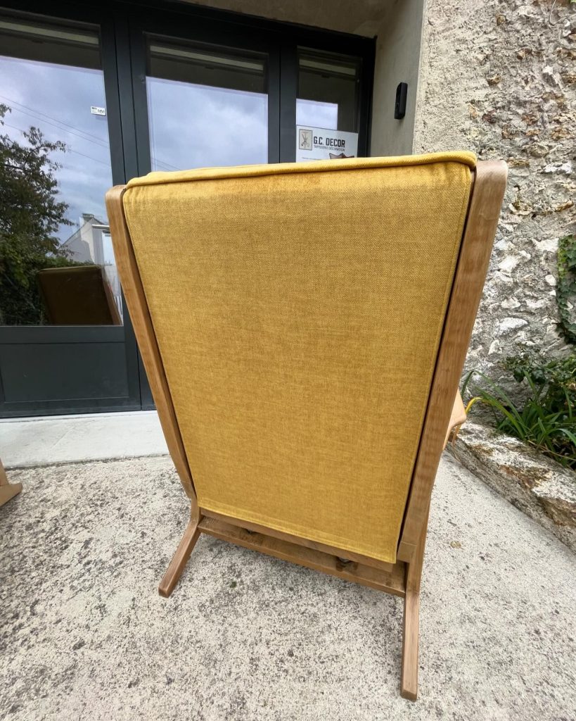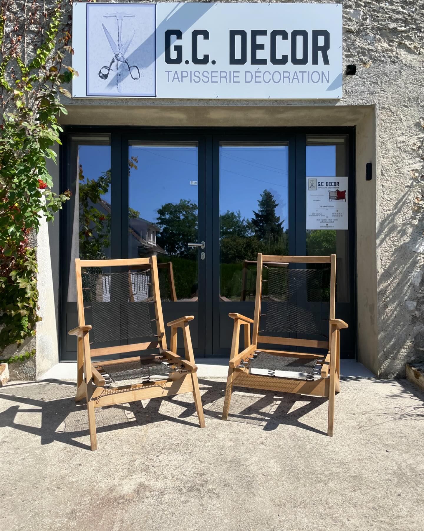 Création de coussins sur mesure pour cette paire de fauteuils style scandinaves trouvés à la poubelle et restaurés par le client.